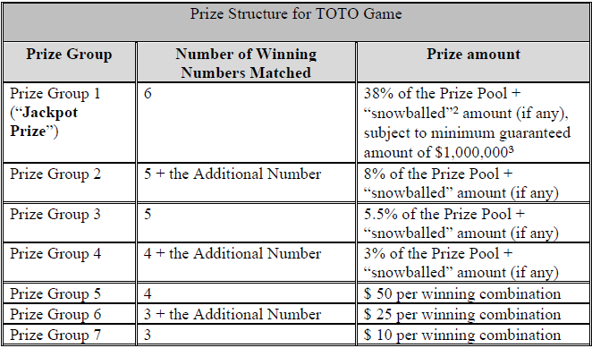 Prize structure table from Singapore Pools